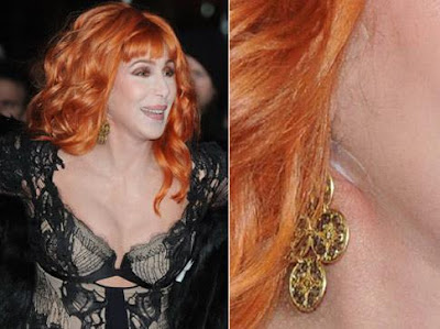 THE SECRET TO CHER'S YOUTHFUL LOOK: Wanna know why 64-year-old Cher has such a tight, youthful appearance? Well, this pic taken at the London premiere of "Burlesque" reveals one of her secrets ...The adhesive strips,known as face lift tape, is used in Hollywood to hold back saggy skin. Now THAT'S how you turn back time! Hi-Yo!! No, YOU shut up!!!